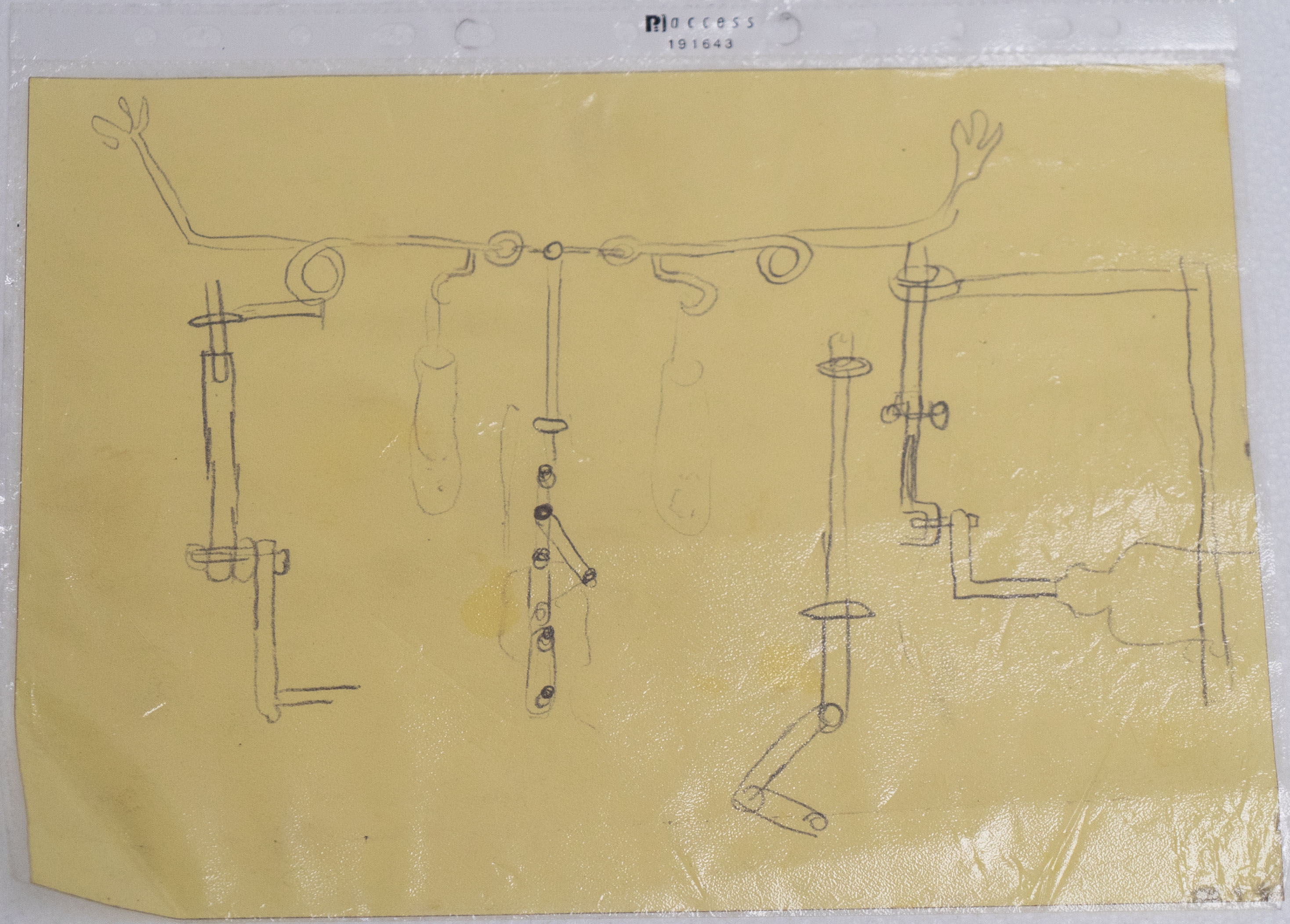 Wooden frame with steel tv mounts, steel arms, sand bags and window-screen motor.
